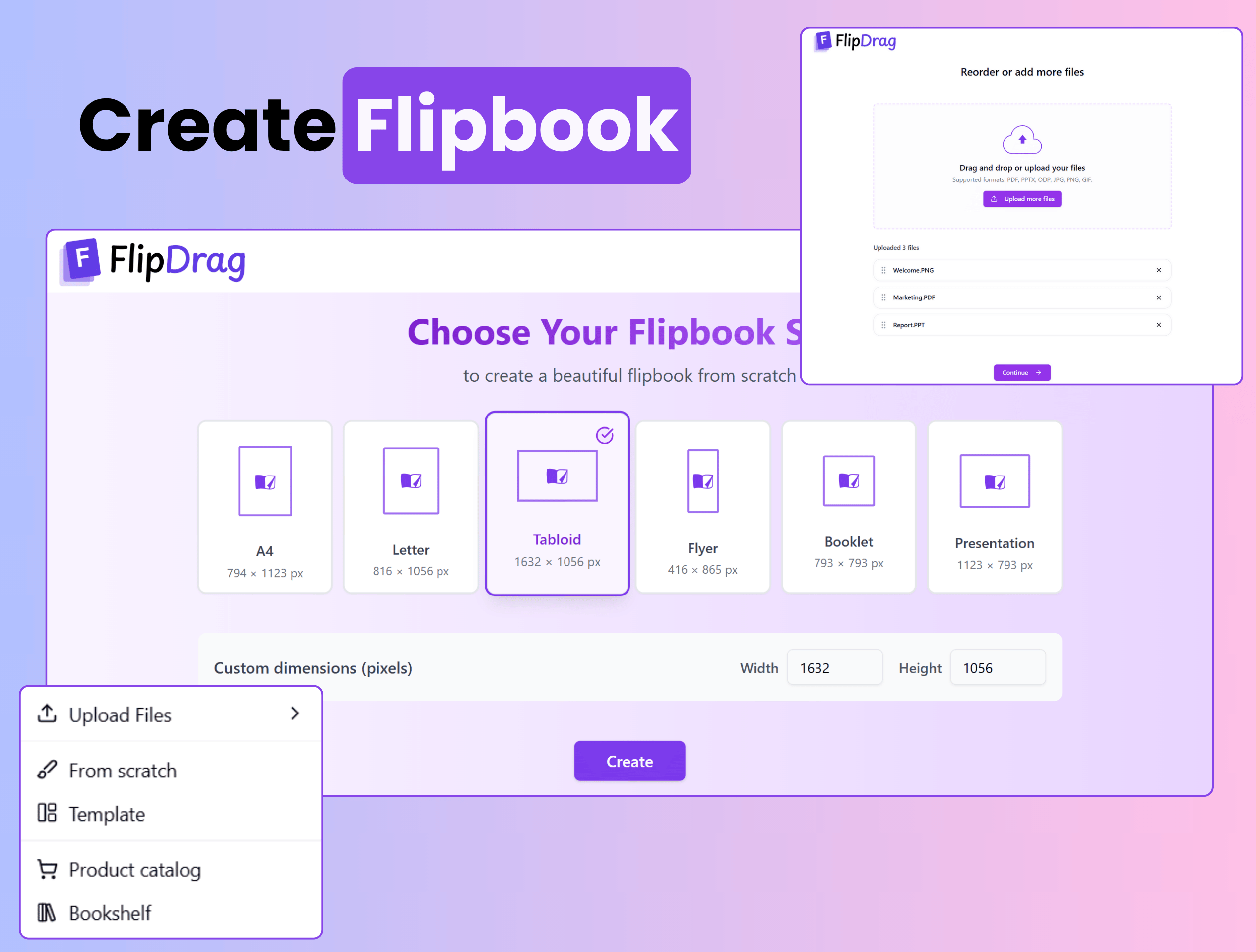 Flipdrag’s Flipbook Builder lets you transform your PDFs into stunning interactive flipbooks no design or coding skills needed. Enjoy a smooth drag-and-drop editor, customizable templates, and powerful branding options all in one place.